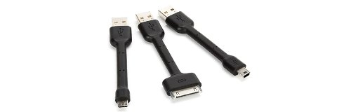 Griffin has re-invented three of our most requested connectors as easy-to-pack no-tangle mini-cables. Three universally useful USB cable adapters for your computer in one handy kit: USB to mini-USB (used in cameras MP3 players and many portable USB devices) USB to micro-USB (used in smartphones and compact USB players) and USB to Apple's 30-pin Universal Dock connector (used in iPod iPhone and iPad). Compact and pocketable this kit is great for laptops mini-notebooks and more. Tuck handily into your backpack handbag or carry-on.