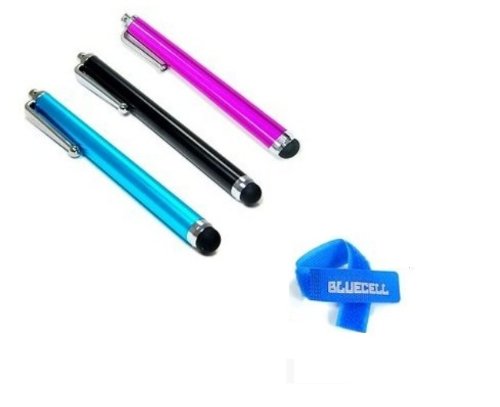 Bluecell 3 Pack of Black Blue Pink Stylus Universal Touch Screen Pen for Ipad 2 Ipod Iphone 4,4S,3g ,3gs, Kindle Fire,Motorola Xoom, Samsung Galaxy Tab 8.9 10.1, Blackberry Playbook HTC Flyer Evo View Tablet Bonus + Bluecell Cable Tie Feature